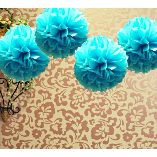 12" Tissue Pom Pom - Turquoise (4 Pack) Images |