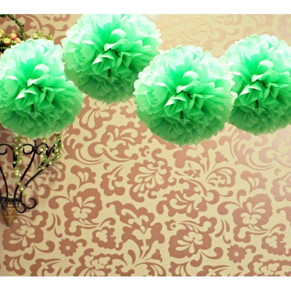 Our tissue pom pom's are perfect for stringing in any occasion. Use these fluffy pom pom's in any environment such as: baby showers, bridal showers, weddings, or birthday parties. String these fluffy wonders across trees, ceilings, or anywhere you can hang these decorations. Each package comes with 4 round edged pom pom's in the same color. Our pom pom decorations are manufactured at the same factory as many top name brands in the industry at a fraction of the price. Why pay more for the same product, purchase your pom pom's from Paper Lantern Store today. Simply unfold each item and fluff up the Pom Pom's and hang them anywhere. Our third photo is the true color of this Pom Pom set.